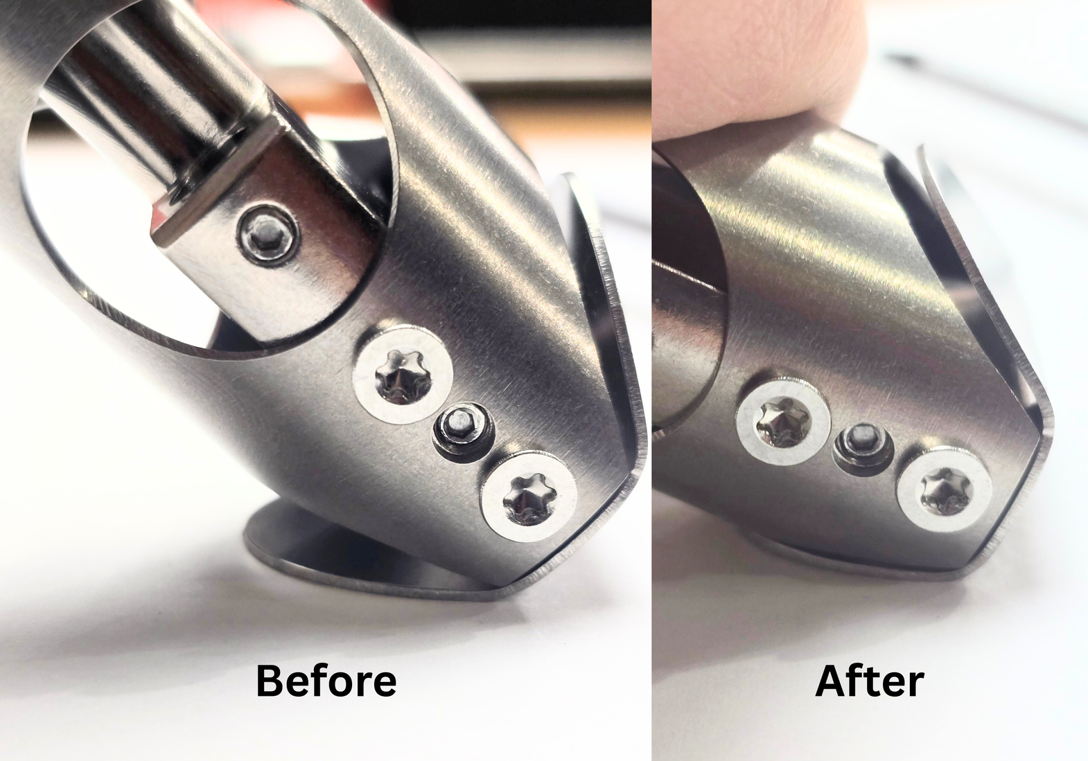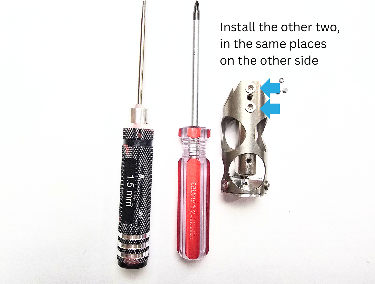 Next, you will use your 1.5mm hex driver to install the 3 grub screws.