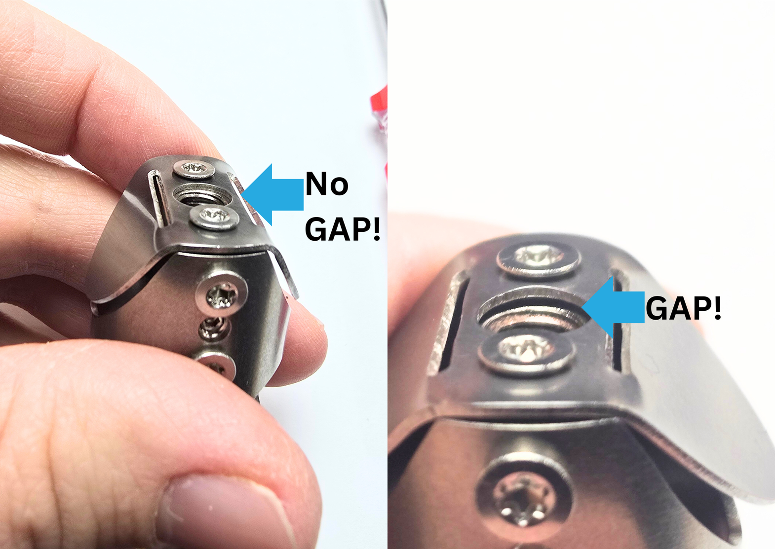 Take your torx screws, and use them to install the shield on the top of the Chube assembly. If there is a gap, like below, you need to tighten your screws down. There should not be a gap between the heatblock and the shield.