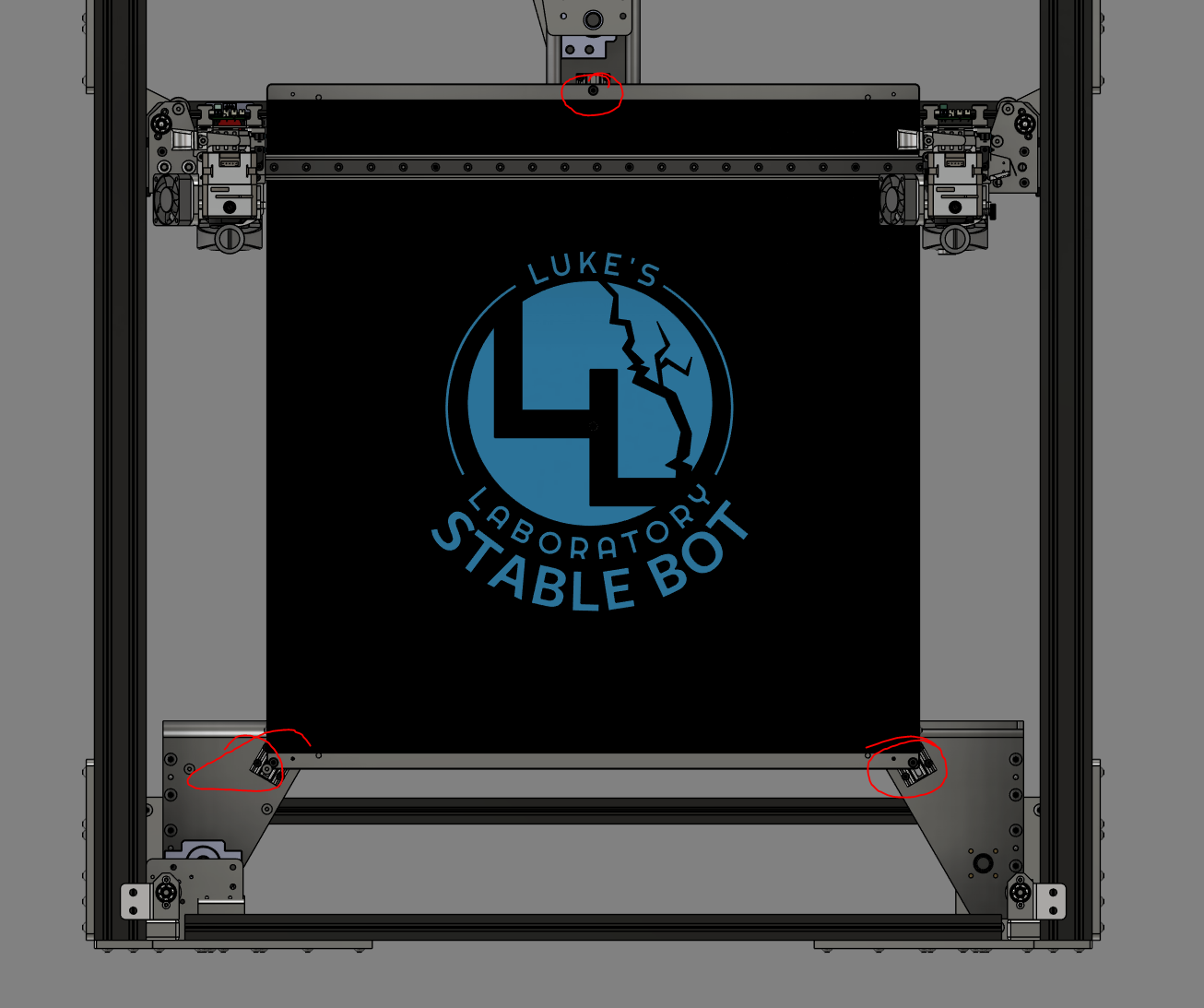 - Reassemble the bed to the 3 z pillars, ensuring that the balls are in contact with the two dowels in each position. Ensure to adequately tighten the nut+spring assembly where the spring is in compression but not fully clamped down.